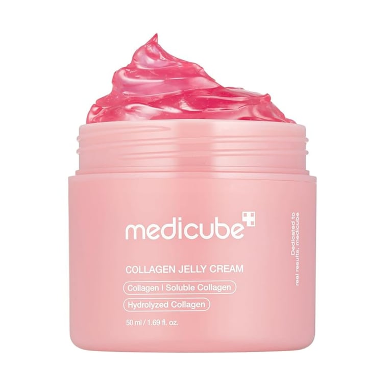 The Medicube Collagen Jelly Cream has this silky, jelly-like texture that melts into your skin, giving it an instant hydrated glow and that lifted, plump look everyone wants.